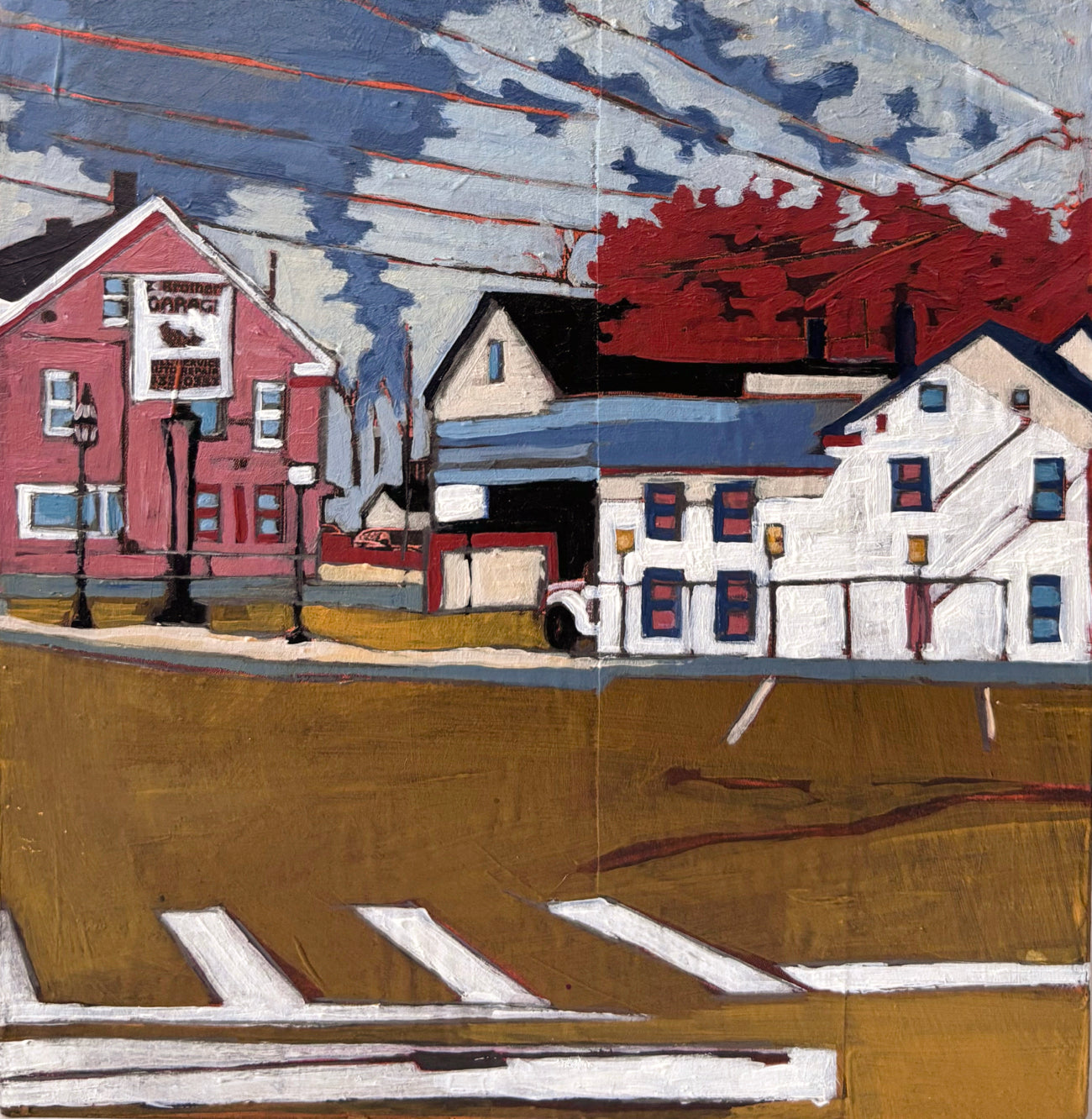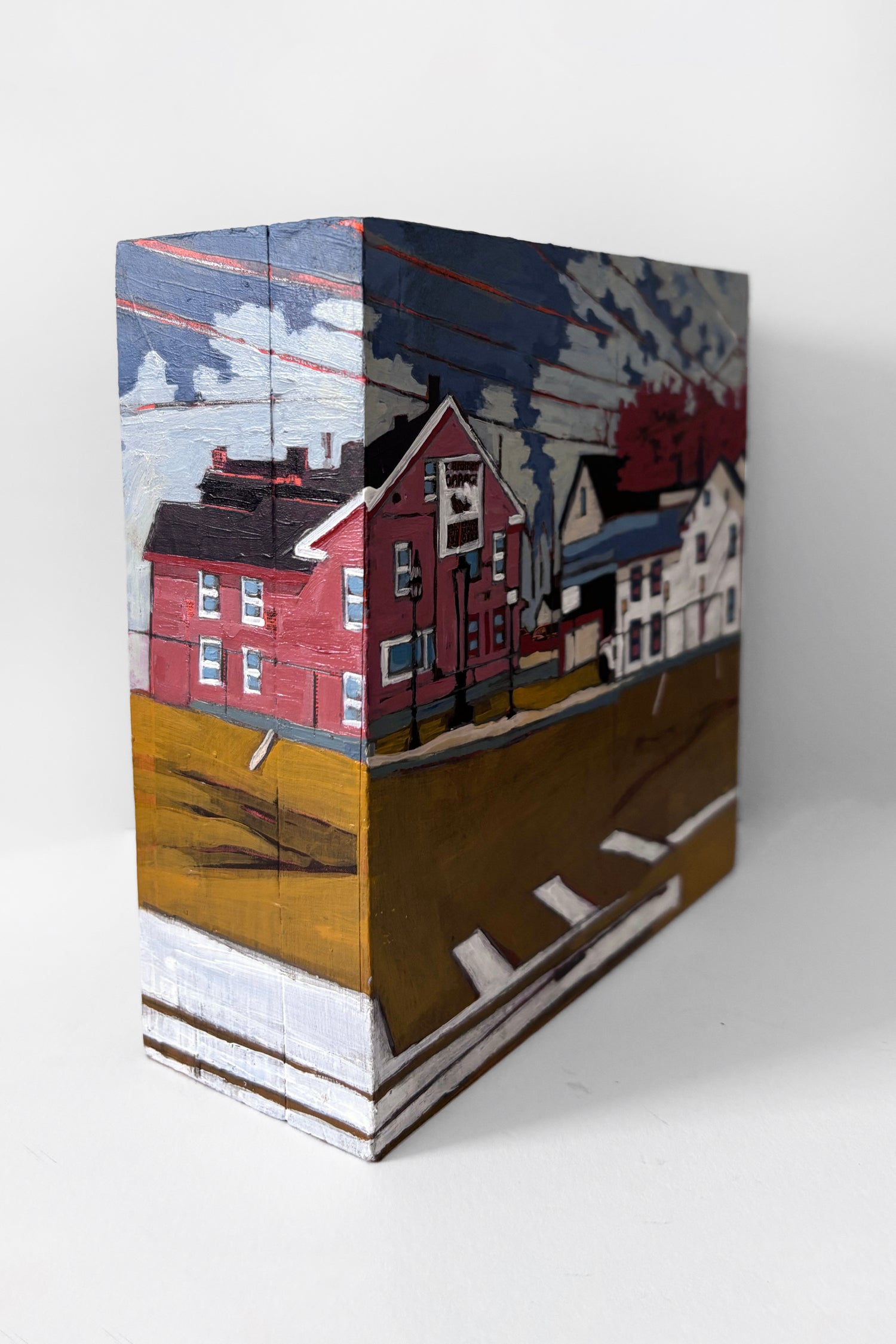 Stacey Durand studied printmaking and art education at Montserrat College of Art. After living on the North Shore for nearly ten years, Durand return home to New Hampshire, settling in the Seacoast where she lives and works exploring and painting the overlapping homes and quirky neighborhoods of the area.