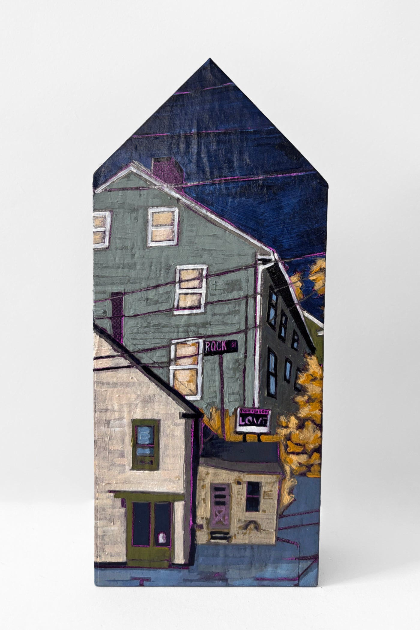 Stacey Durand studied printmaking and art education at Montserrat College of Art. After living on the North Shore for nearly ten years, Durand return home to New Hampshire, settling in the Seacoast where she lives and works exploring and painting the overlapping homes and quirky neighborhoods of the area.