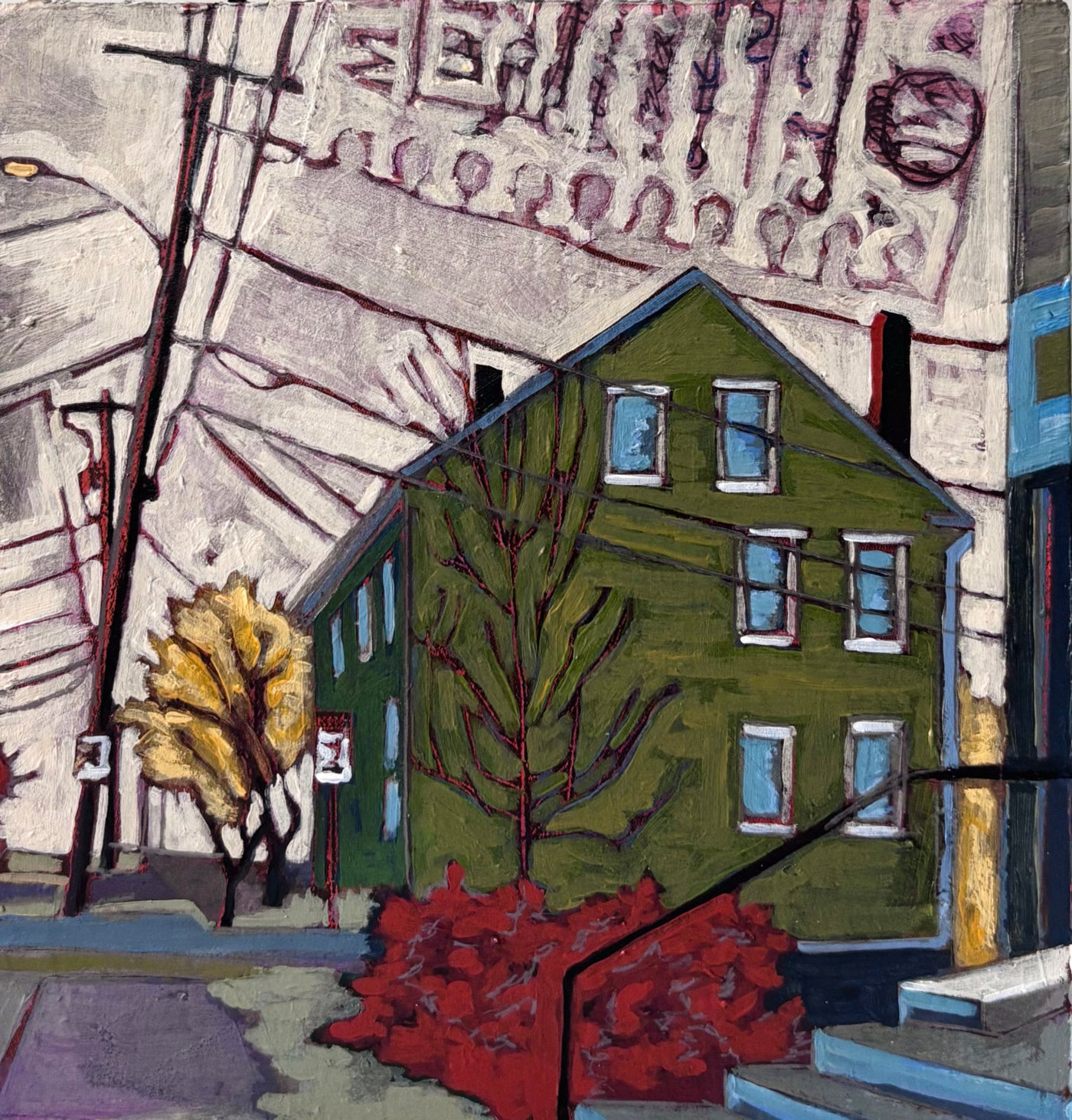 Stacey Durand studied printmaking and art education at Montserrat College of Art. After living on the North Shore for nearly ten years, Durand return home to New Hampshire, settling in the Seacoast where she lives and works exploring and painting the overlapping homes and quirky neighborhoods of the area.