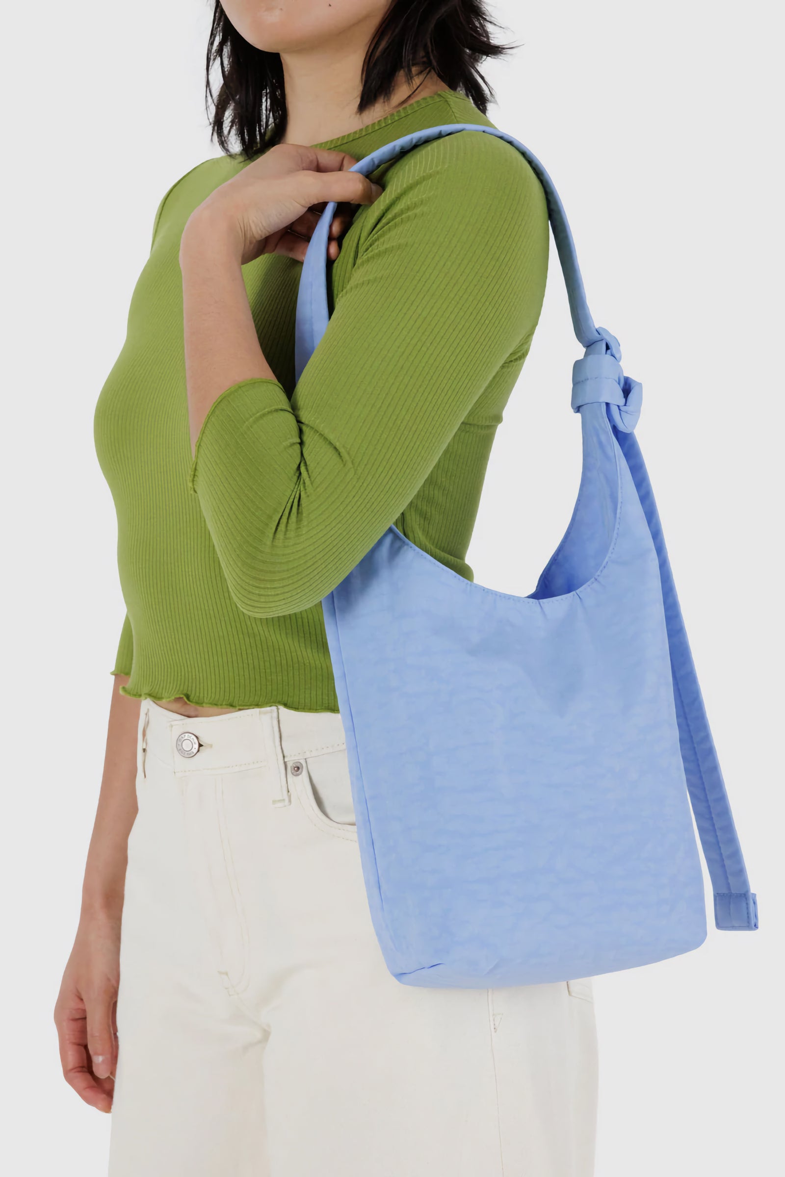 Details: A slouchy, softly structured nylon bag with an adjustable strap. Interior zip pocket with a magnetic closure.