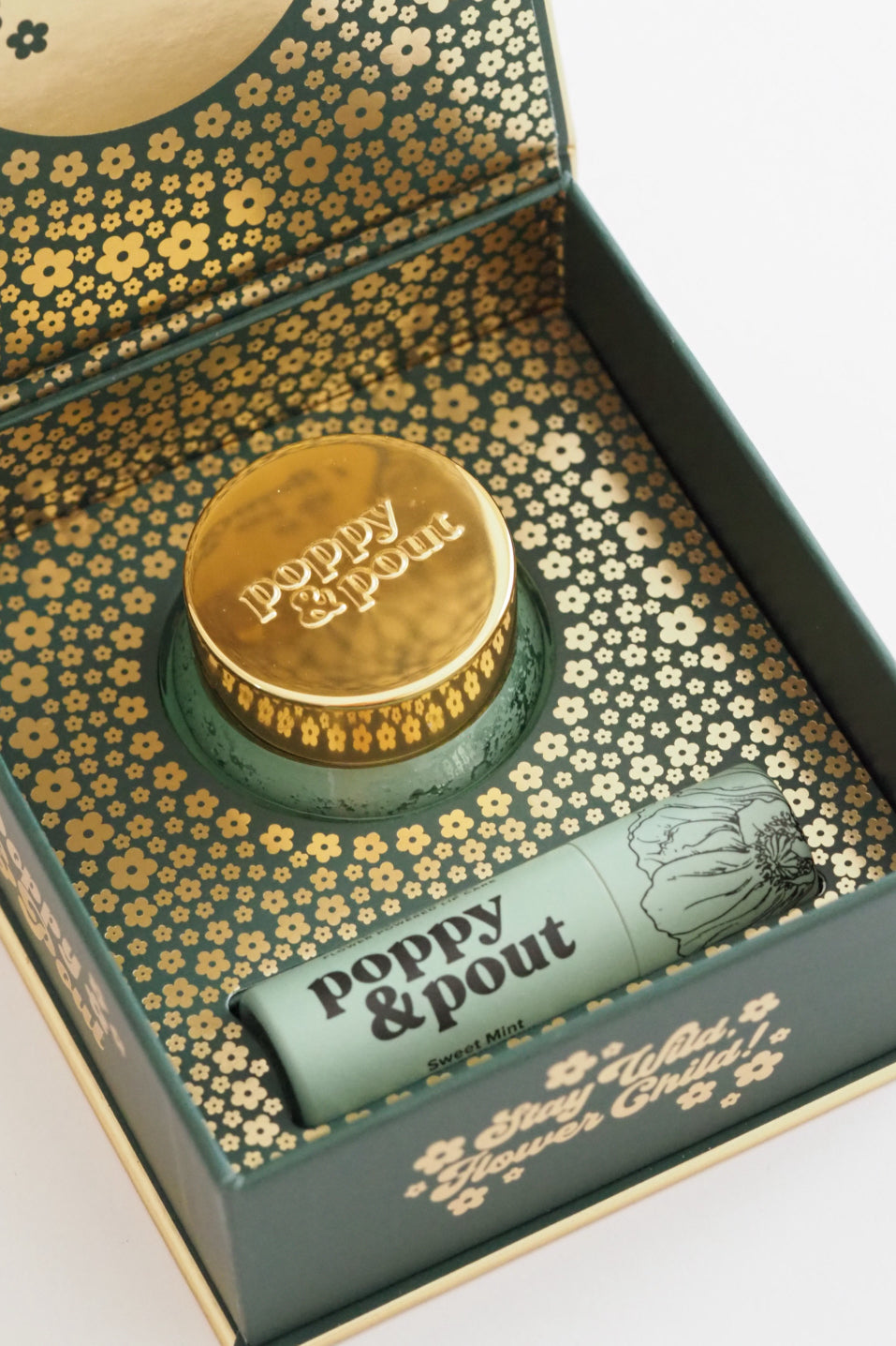 Details: This set includes one matching lip balm and lip scrub in a lovely green and gold, recyclable gift box.
