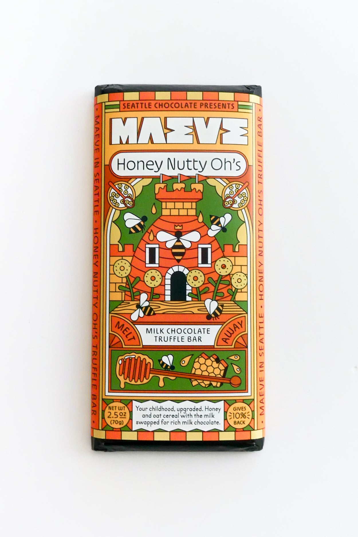 Honey Nutty Oh's Chocolate Truffle Bar Ingredients: Milk chocolate (cane sugar, milk, cocoa butter*, cocoa mass*, soy lecithin, natural vanilla), granulated honey (cane sugar, honey), organic cereal (brown rice flour, corn flour, cane sugar, pomegranate juice concentrate, sea salt), coconut oil, dry roasted almonds, blackberry blossom honey, natural flavor, Himalayan pink salt.