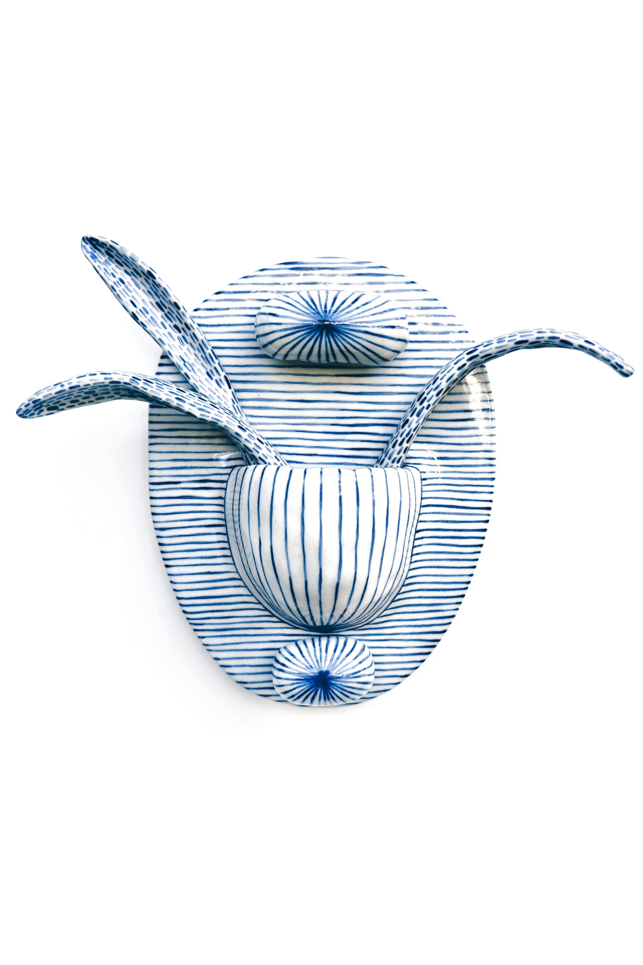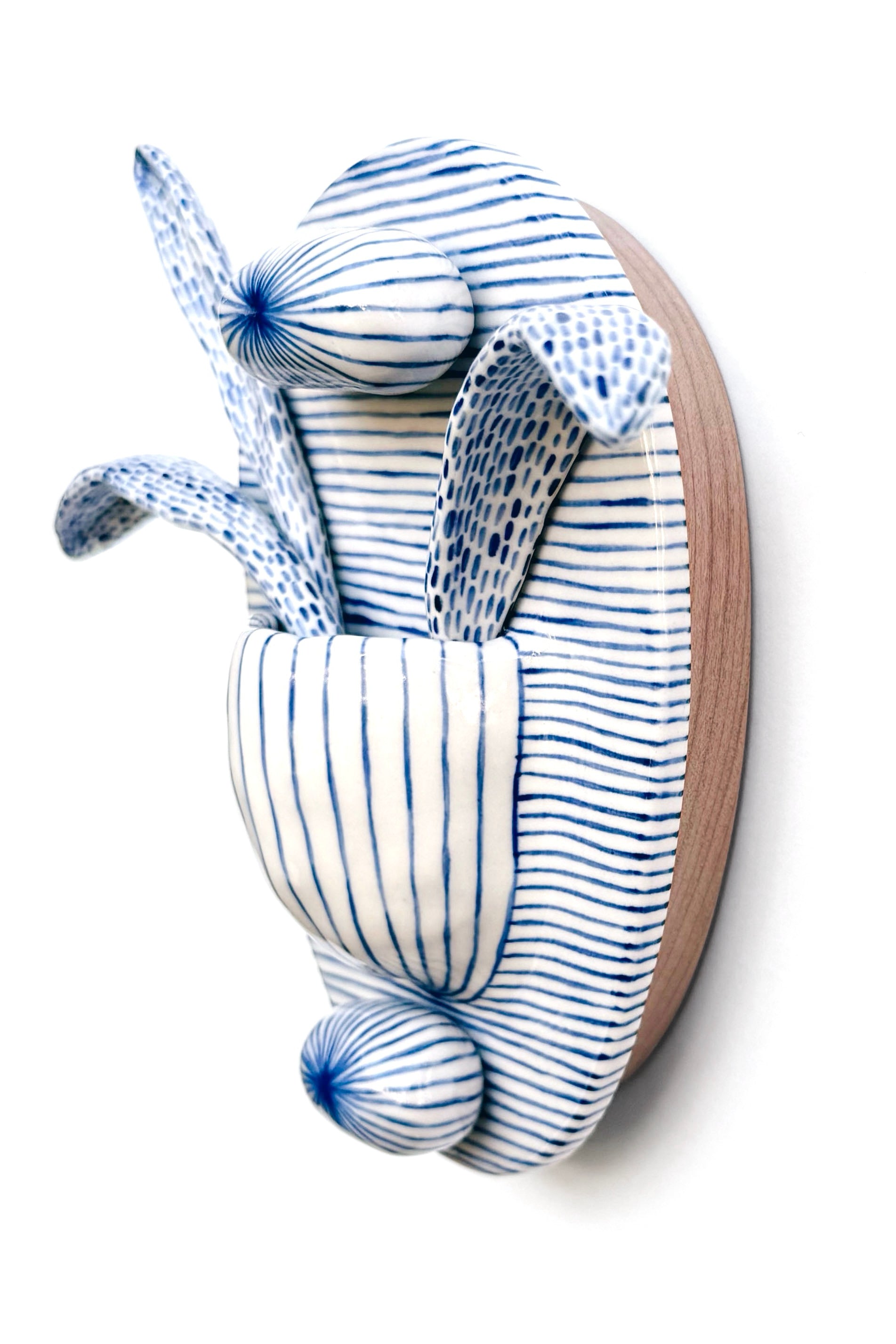 Portals for seeing and vessels for holding. Hand formed of porcelain and patterned one brushstroke at a time.
