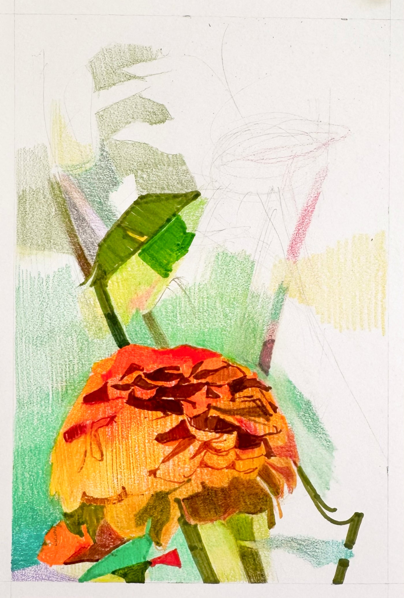 for the study of color, shape, and surface. I work from life, mostly outside, collecting observations of natural subjects over time. These unfolding cues guide my use of the the chosen medium - transparency and opacity, hard and soft transitions, color harmonies and dissonance. The works unfold as layered documents of the moments I spend looking.