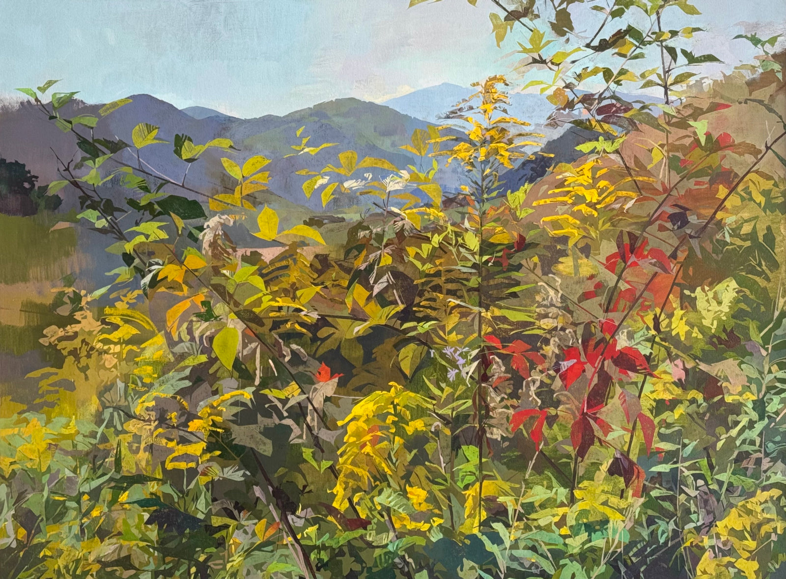 for the study of color, shape, and surface. I work from life, mostly outside, collecting observations of natural subjects over time. These unfolding cues guide my use of the the chosen medium - transparency and opacity, hard and soft transitions, color harmonies and dissonance. The works unfold as layered documents of the moments I spend looking.