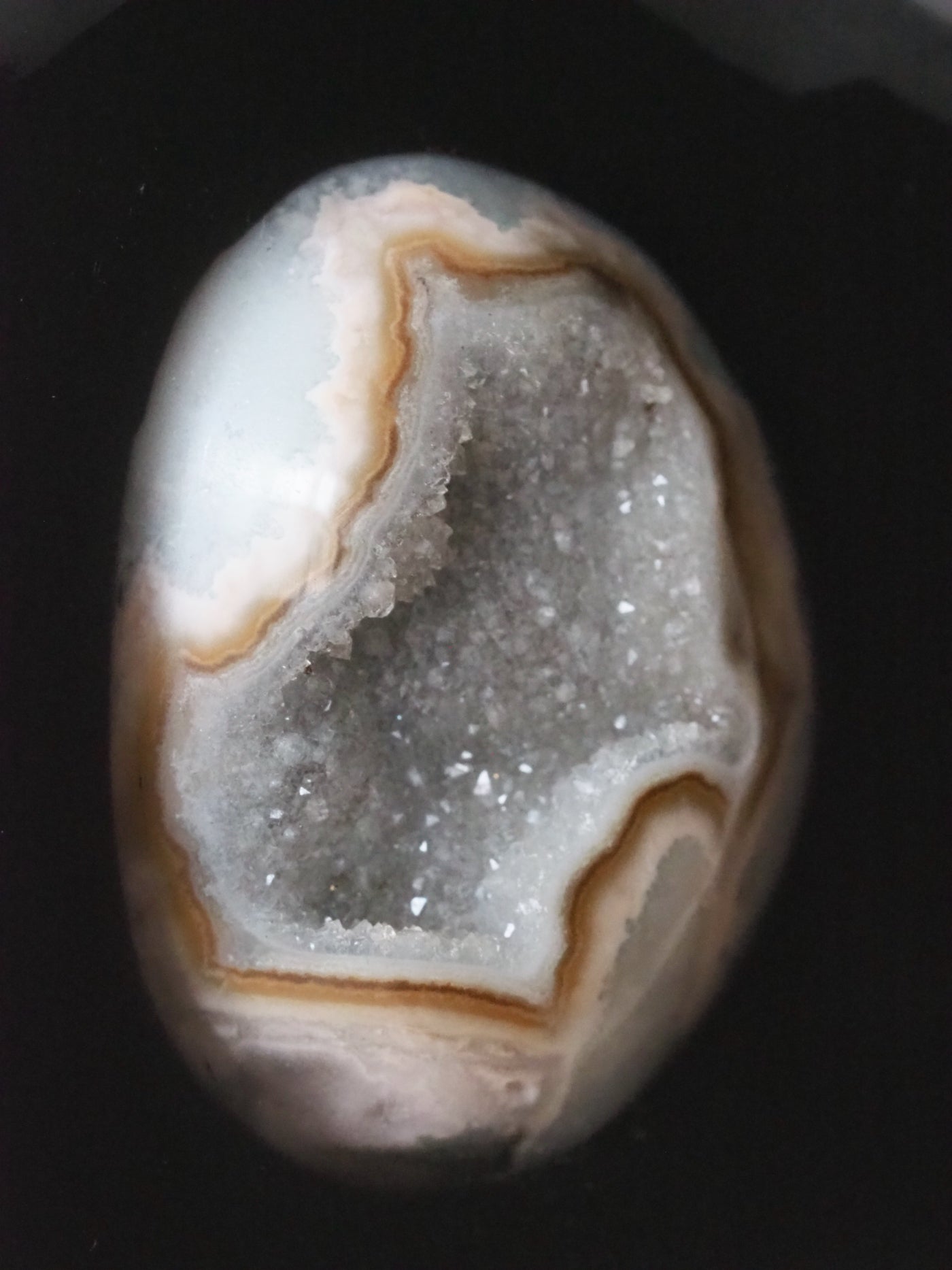 Medium: Acrylic, ink, glitter, druzy amethyst and layered resin on wood