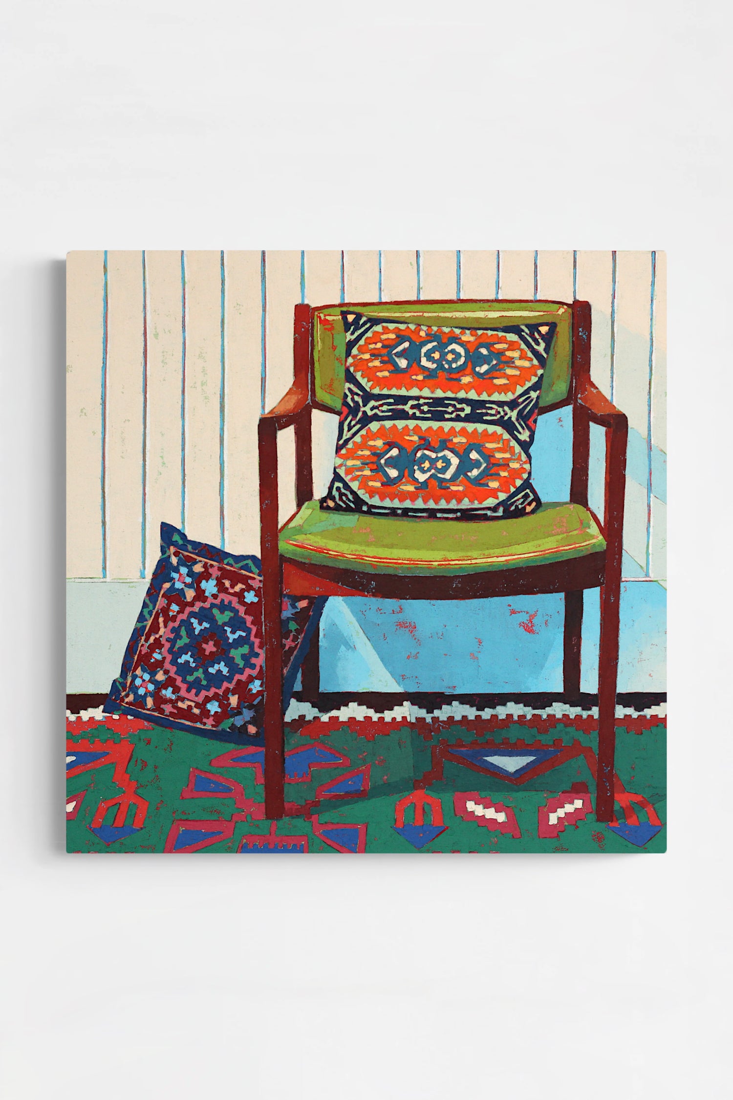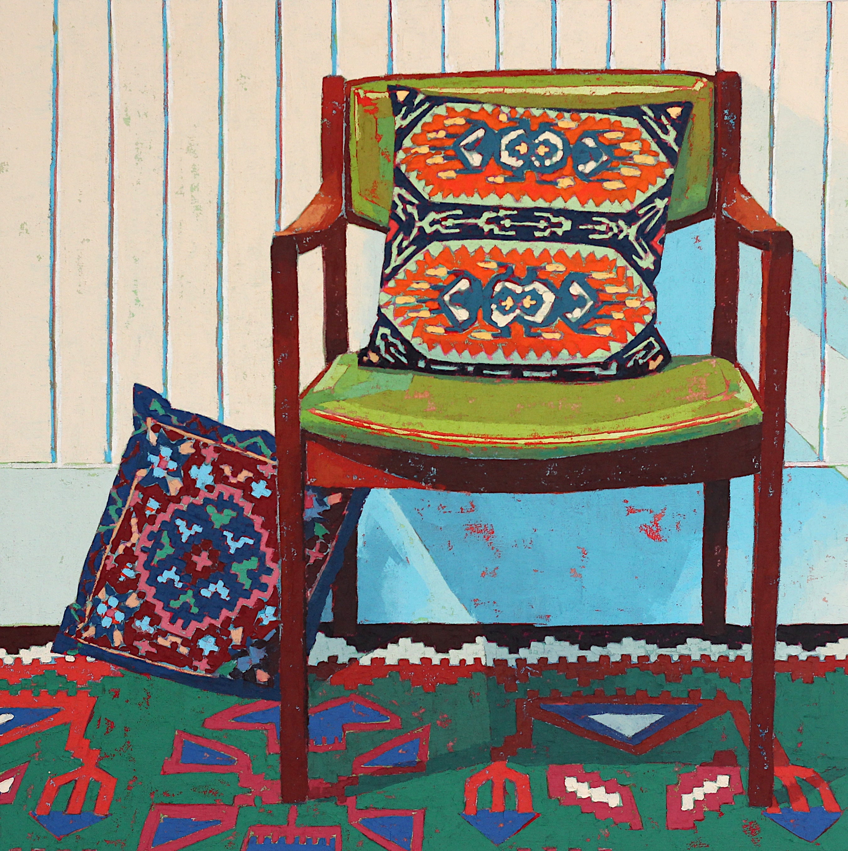 Existing between the broad, open expanses of landscape and the close, intimate nature of still life, this work is about not balancing both, but being oneself in both. There is a dance between the joy of dissolving and the comfort of rigidity. Each hopefully fueling the other. And there are plenty of places to sit with friends too