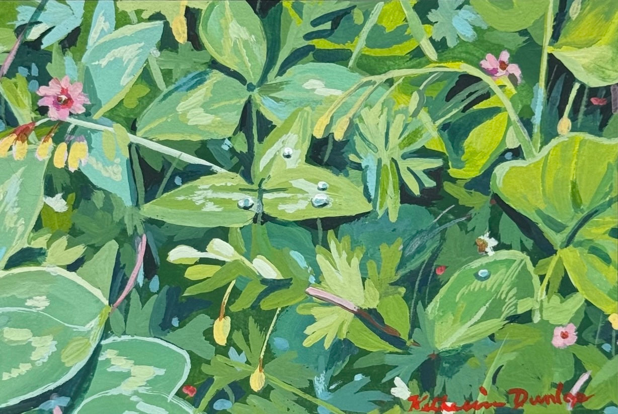 The "April Showers" series emerged from slow walks with my dog. What could often be a negative experience of walking in the rain transformed into an opportunity to closely observe the small patches of grass and weeds beneath me. I enjoyed imagining the tiny worlds of creatures seeking shelter under the clover. This series also transported me back to my childhood, recalling those countless times with nothing to do but sit in the grass and pull weeds from the ground.