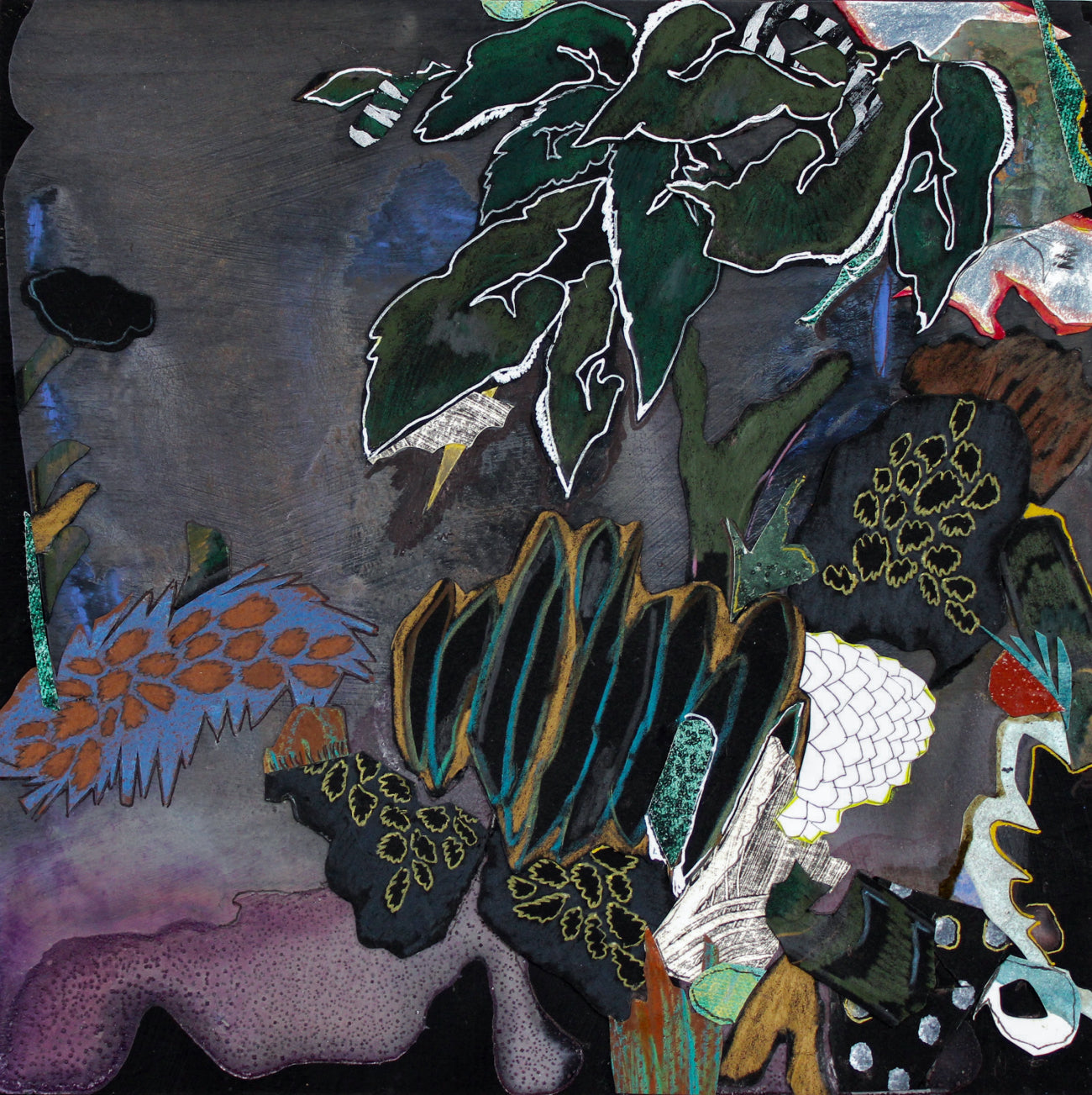 Medium: Watermedia, ink, painted papers and salt on panel
