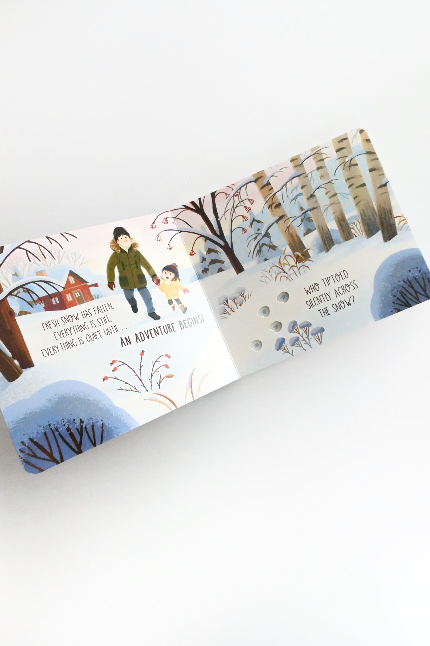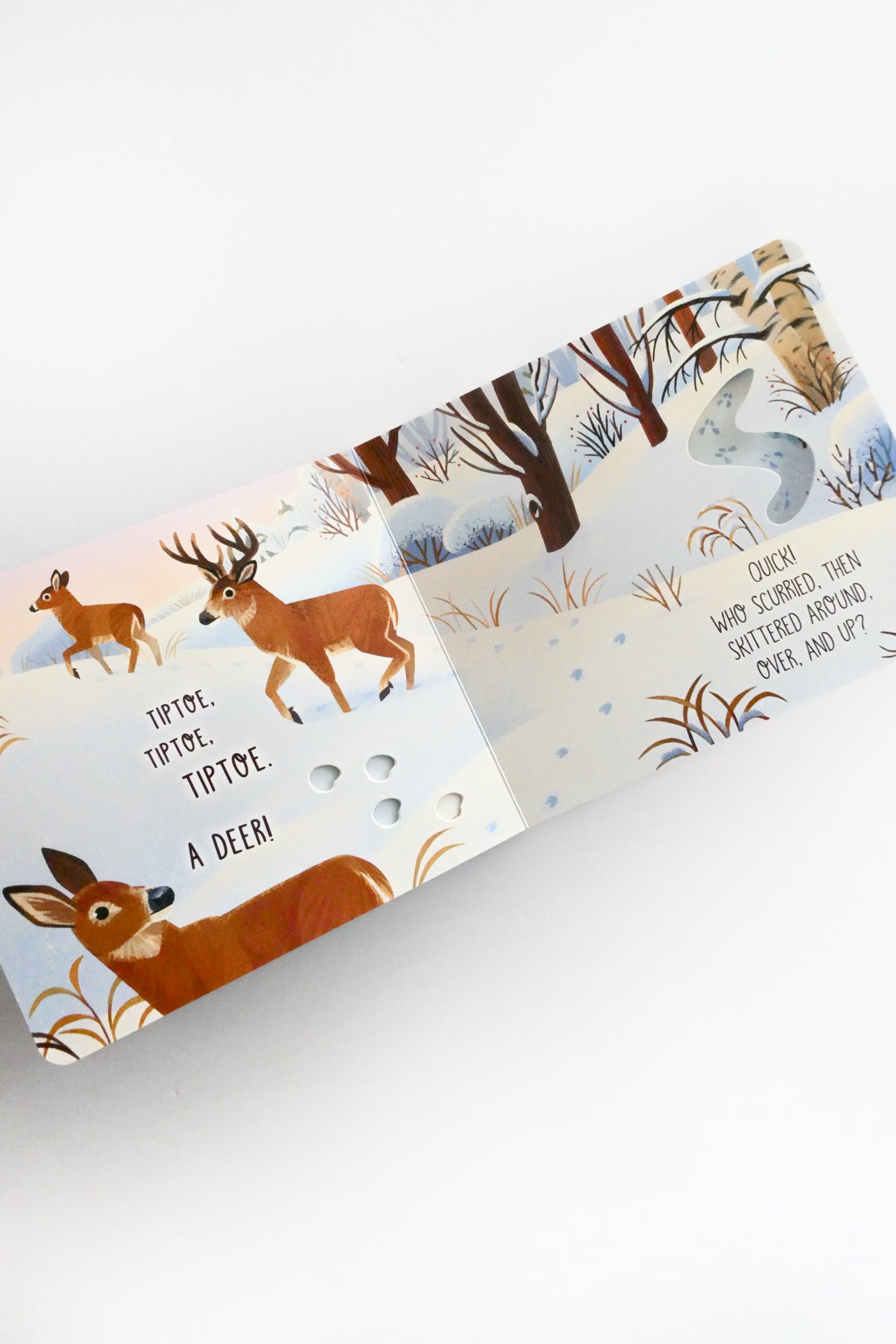 Go on a snowy adventure through the woods and match animals to their tracks in this beautiful board book with die-cuts throughout! Who tiptoed across the snow? Who scurried and skittered? Who slink-slink-slinked along? Little readers will love looking at different tracks in the snow and figuring out which animal made each one.
