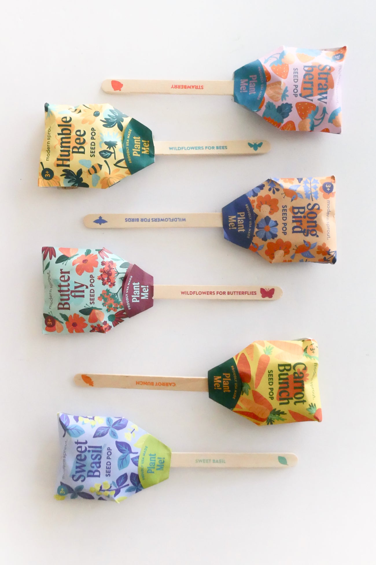 Details: Seed Pops are seeds embedded in a nutrient-rich clay mixture and are designed to be planted in the ground or a pot. Just unwrap, plant and grow! Once planted, the wooden stick serves as a garden marker.