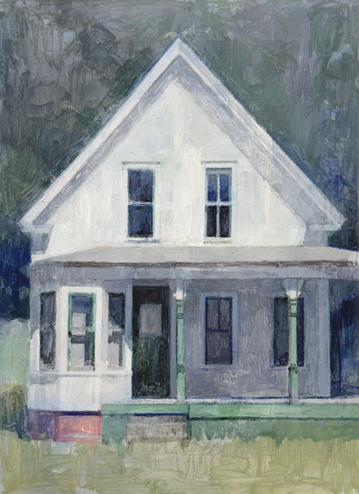 My work focuses on vernacular buildings, simultaneously ubiquitous but also inextricably tied to regional identity and the places we call home. These works were made along I-81 and the route from SC to NH, up the Shenandoah Valley, rust belt of Eastern Pennsylvania, the Hudson River into Vermont and New Hampshire—flashbulb paintings, remembered colors, moments from my life in New England and a recent move South. The series captures the fleeting notion of home and place taken from the blurred vantage point of a car window on 70-mph highway and familiar backroads