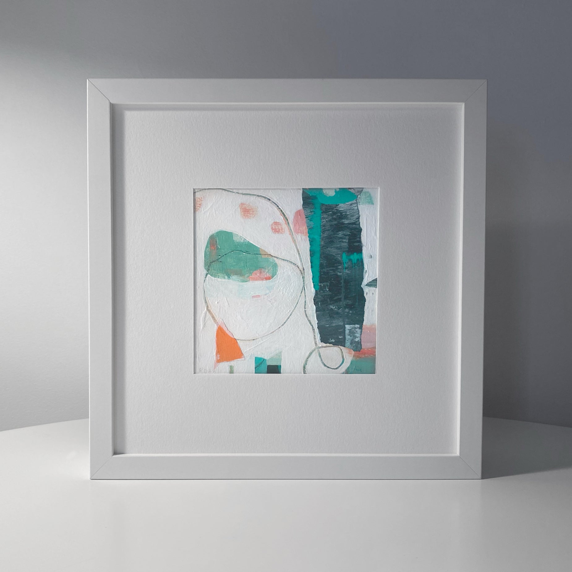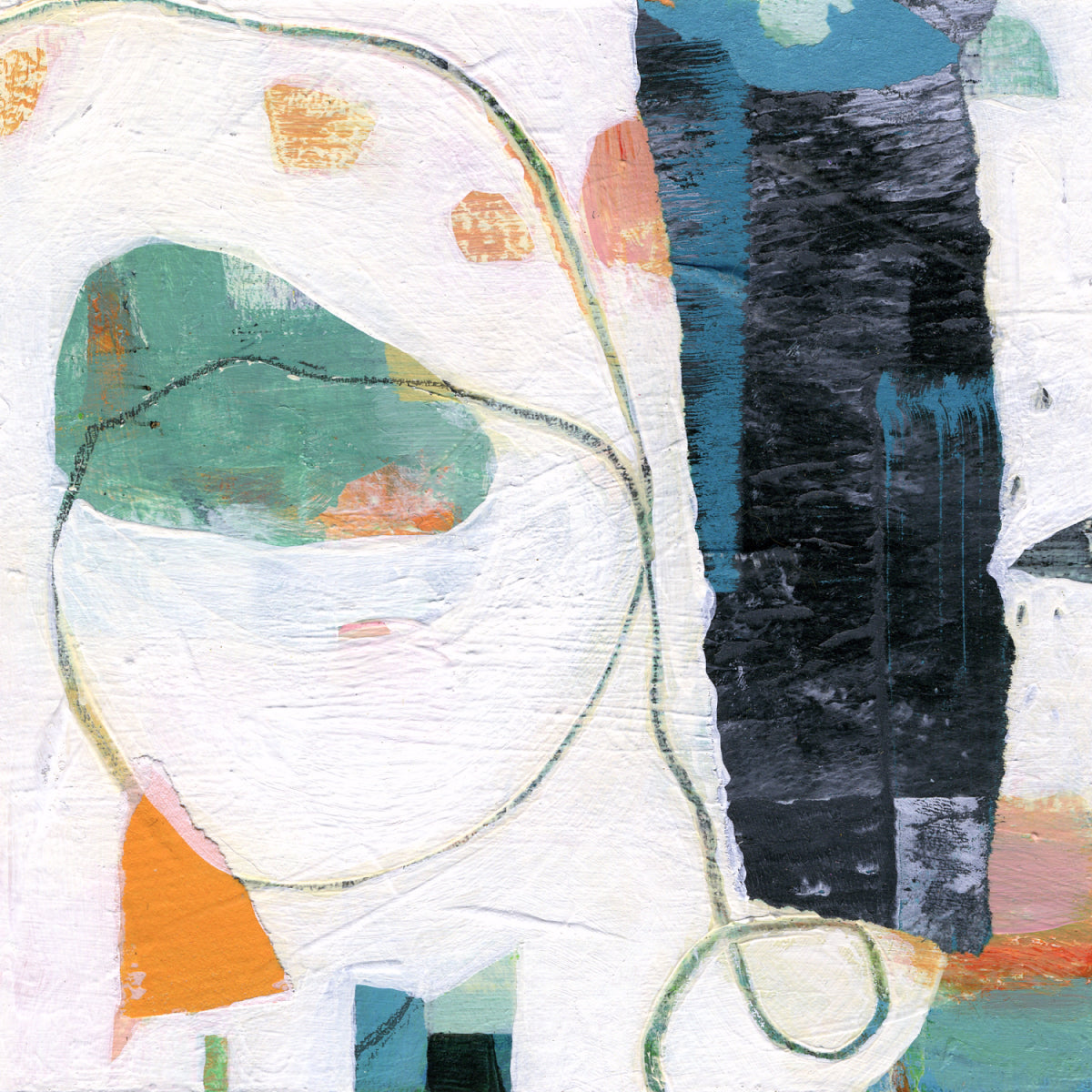In this series of small abstract mixed-media paintings, I explored visually what I don’t have words for. These paintings emerged full of gestural marks, layers, transparent and opaque spaces, and bits of illegible writing. They reflect my humble process of navigating upheaval, finding grounding, and seeing through obstacles – real or imagined.