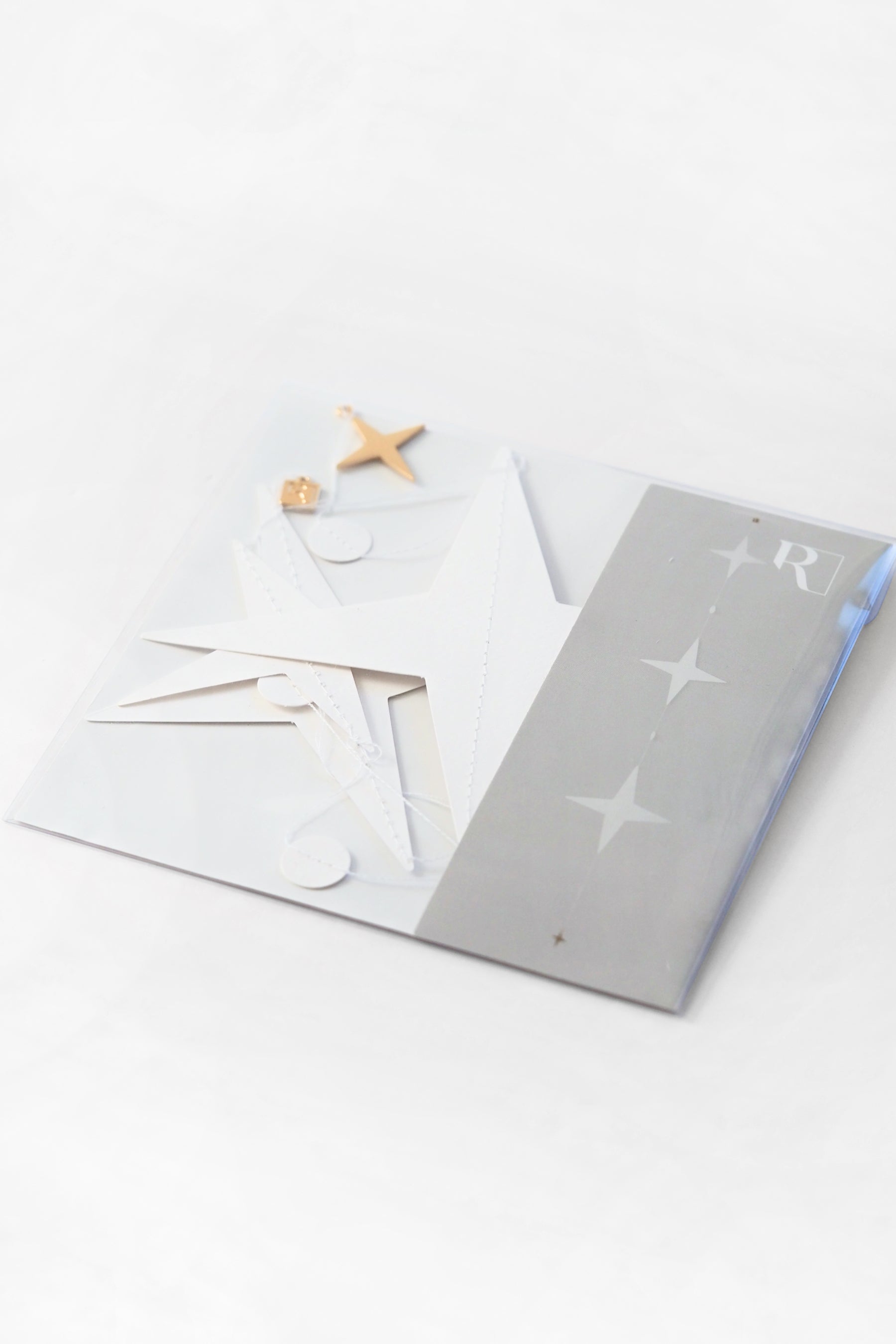 Details: Decorative garland made up of paper stars of various sizes, with a gold star weight on one end.
