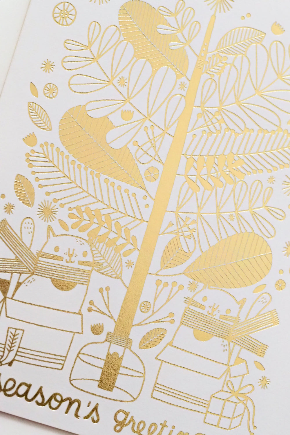 Red Cap Cards celebrates art and correspondence, showcasing illustrators renowned for their work in children's books, animation, design, and modern art. Based in Los Angeles, they champion handwritten letters on 100lb recycled paper, adorned with luxurious gold foil accents.