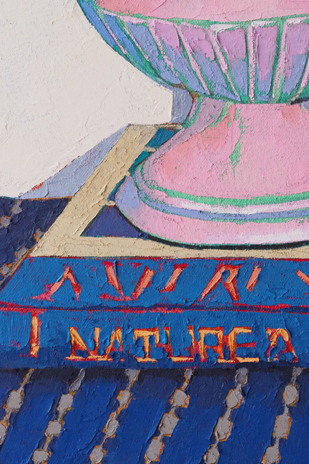 Existing between the broad, open expanses of landscape and the close, intimate nature of still life, this work is about not balancing both, but being oneself in both. There is a dance between the joy of dissolving and the comfort of rigidity. Each hopefully fueling the other. And there are plenty of places to sit with friends too