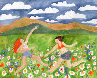 Melissa Lakey is an artist and illustrator based in Joshua Tree, California, where the windows of her art studio look out onto the Mojave Desert. Her colorful mixed media paintings explore the magic of the American Southwest, as well as night, summertime, road trips, solitude, and friendship. She creates work based on both real memories and imaginary places she’d like to visit — swimming, dreaming, in the sunshine and under the moonlight.