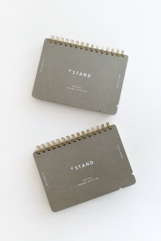 Details: The +Stand Notebook is a notebook designed to be standing atop your desk or countertop. 160 pages
