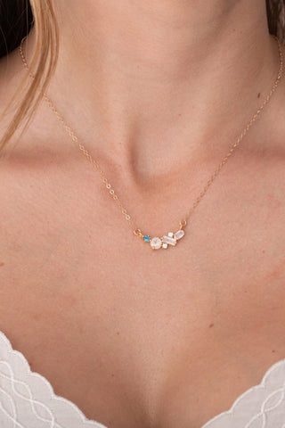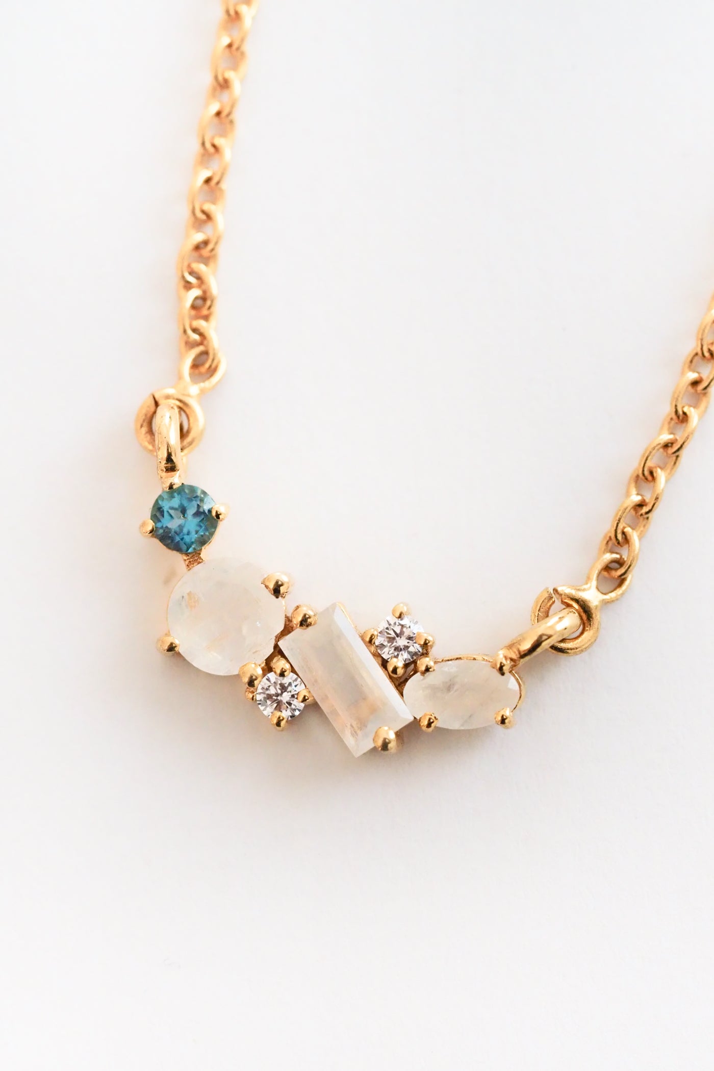 Material: 18kt gold vermeil, rainbow moonstone, topaz