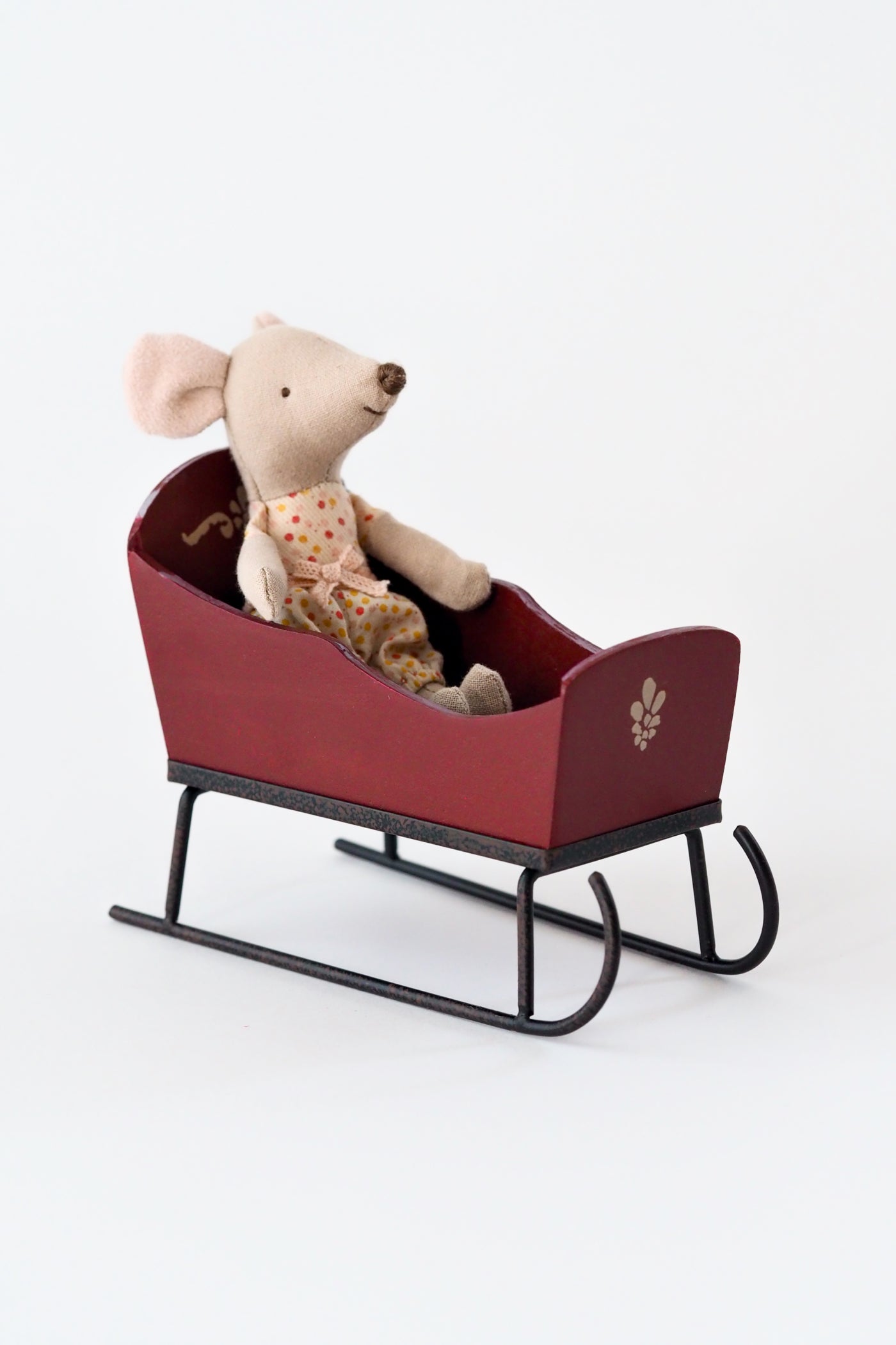 Details: A lovely sleigh with a soft mattress to keep the passengers warm and comfortable during the ride. Mouse not included