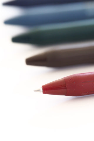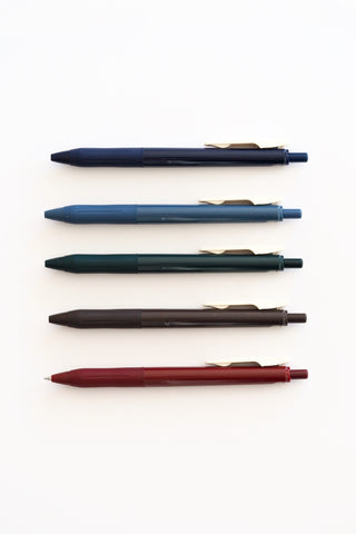 Details: Set of five pens. Colored ink: Sepia black, dark gray, Bordeaux purple, casis black, camel yellow.